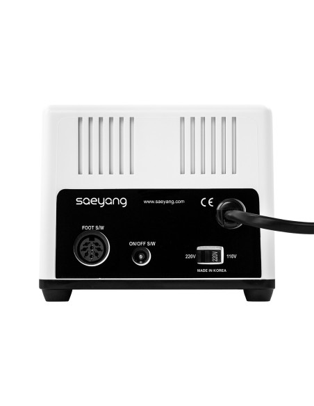 Kompaktiškas retro stiliaus įrenginys. Mažo dydžio Saeyang Marathon N2 Retro frezavimo staklės sujungia aukštą funkcionalumą ir rafinuotą estetiką. Retro stiliaus, baltos ir oranžinės spalvos atspalvių korpusas suteikia įrenginiui išskirtinę ir akį traukiančią išvaizdą. Be to, frezavimo staklės turi gumuotas kojeles, kurios užtikrina stabilią padėtį ir apsaugo stalviršį nuo galimų pažeidimų. Frezavimo staklės puikiai tinka kasdieniam naudojimui, užtikrinančios patogumą kiekvienos manikiūro ir pedikiūro procedūros metu. Į komplektaciją įeina: frezavimo staklių bazė, galvutė, maitinimo blokas.