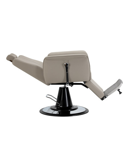 Plačios reguliavimo galimybės. Efektyvus hidraulinis keltuvas leidžia sklandžiai reguliuoti sėdynės aukštį 55-67 cm diapazone, net kai klientas jau sėdi kėdėje. Tai užtikrina ergonomiškas darbo sąlygas ir leidžia lengviau pritaikyti nustatymus tiek kliento, tiek kirpėjo ūgiui. Atlošiamas atlošas ir reguliuojama kojų atrama leidžia klientą paguldyti į patogią, pusiau atloštą padėtį, padidindama komfortą pasirinktų paslaugų metu. Reguliuojama galvos atrama užtikrina stabilų galvos ir kaklo atramą. Patogūs darbo patogumai Patogi sėdynė suteikia klientui komfortą atliekant įvairias paslaugas. Aukštas atlošas suteikia tvirtą nugaros atramą, užtikrinančią patogią ir stabilią padėtį. Pilnas sukimosi mechanizmas padidina judėjimo laisvę ir pagerina darbo organizavimą. Minkšti porankiai, pastatyti optimaliame aukštyje, palaiko taisyklingą kliento rankų padėtį, mažina įtampą pečiuose.