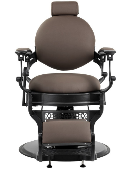 Naudotos medžiagos taip pat daro įrangą atsparią drėgmei, patvarią ir lengvai valomą. Rudas užvalkalas kėdei suteikia jai išskirtinio charakterio. Būdingo dizaino, vintažinį stilių primenantis fotelis puikiai dera prie kirpyklų atmosferos, pabrėžia jų unikalią atmosferą. Detalesni matmenys pateikti nuotraukoje. Sintetinė oda.