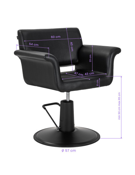 Minimalistinis fotelis kirpykai - funkcionalumo ir nesenstančios estetikos derinys. Patvarus hidraulinis keltuvas užtikrina sklandų aukščio reguliavimą, todėl padėtį lengviau pritaikyti pagal stilisto poreikius. Ergonomiška sėdynė su patogiu atlošu ir stilingais porankiais užtikrina komfortą procedūrų metu, o dėl modernaus, minimalistinio dizaino fotelis puikiai tinka tiek klasikinių, tiek šiuolaikinių svetainių dekorui.