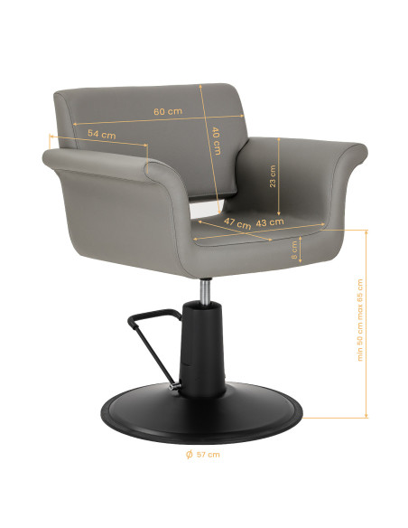 Minimalistinis fotelis kirpykai - funkcionalumo ir nesenstančios estetikos derinys. Patvarus hidraulinis keltuvas užtikrina sklandų aukščio reguliavimą, todėl padėtį lengviau pritaikyti pagal stilisto poreikius. Ergonomiška sėdynė su patogiu atlošu ir stilingais porankiais užtikrina komfortą procedūrų metu, o dėl modernaus, minimalistinio dizaino fotelis puikiai tinka tiek klasikinių, tiek šiuolaikinių svetainių dekorui.