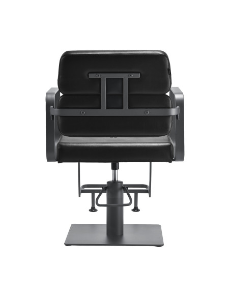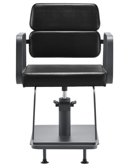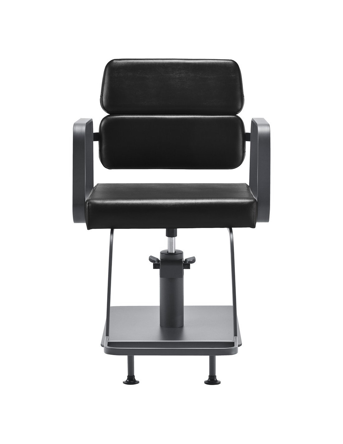 Patvarus hidraulinis keltuvas leidžia reguliuoti sėdynės lygį 49-61 cm diapazone – net kai klientas sėdi ant kėdės. Tai užtikrina ergonomiškesnį darbą, leidžiantį reguliuoti sėdynės lygį tiek kliento, tiek kirpėjo ūgiui. Vizualiai įdomus atlošas leidžia užimti patogią padėtį, suteikia puikią atramą nugarai, o tai ypač svarbu ilgalaikių procedūrų metu. Didelis šio modelio privalumas – tarp atlošo ir sėdynės palikta skylė. Su juo lengviau išlaikyti švarą salone, nes galite lengvai iššluoti plaukus iš kiekvieno fotelio kampelio. Tai leidžia supaprastinti darbo vietos paruošimą tarp klientų. Darbą palengvinantys sprendimai Pilnas kėdės sukimosi mechanizmas padaro kirpėjo darbą efektyvesnį ir patogesnį. Tvirtas, plokščias, kvadrato formos pagrindas garantuoja stabilumą naudojimo metu. Matinis lygus paviršius suteikia elementui elegantišką išvaizdą ir palengvina jo švarą.
