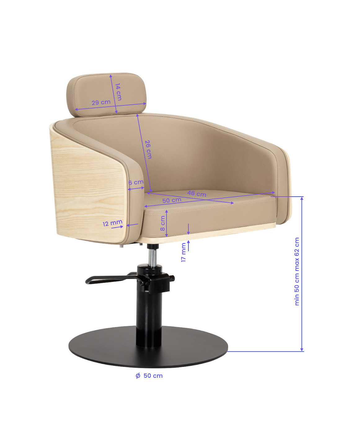 Stilinga kirpyklos kėdė su hidrauliniu keltuvu sujungia nesenstančią estetiką ir praktiškus sprendimus. Įrengtas tvirtas hidraulinis keltuvas leidžia patogiai reguliuoti aukštį ir palengvina stilisto darbą. Kontūrinė sėdynė garantuoja komfortą net per daugelį procedūrų valandų. Moderni, aptaki linija, praturtinta mediniais elementais, suteikia jai savitumo, todėl tai ne tik funkcionali įranga, bet ir svetainės puošmena. Veiksmingumas, ilgaamžiškumas ir komfortas Patvarus hidraulinis keltuvas leidžia sklandžiai reguliuoti sėdynės aukštį nuo 50 iki 62 cm – taip pat ir tada, kai klientas sėdi kėdėje. Šis sprendimas užtikrina ergonomiškas darbo sąlygas ir leidžia idealiai pritaikyti padėtį tiek kliento, tiek kirpėjo ūgiui.