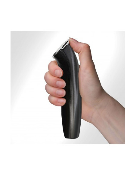 Labai lengvas ir tylus trimeris, ergonomiško dizaino. Variklis užtikrina sklandų veikimą, nepriklausomai nuo akumuliatoriaus įkrovos lygio. Indikatorius rodys, kada laikas įkrauti prietaisą. Komplekte yra vienas reguliuojamas antgalis (3 / 4,5 / 6 ir 7,5 mm), valymo šepetėlis, alyva.