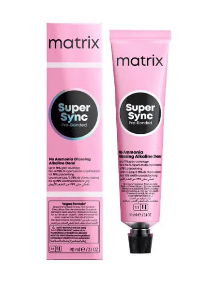 NAUDOJIMO NURODYMAI: Naudokite tik su rekomenduojamu Matrix Cream Developer, 10V (3%). Naudokite tik nurodytas proporcijas. Sumaišykite 1,5 uncijos (45 g) „Super Sync“ plaukų spalvą su 1,5 uncijos (45 ml) „Matrix 10V“ (3 %) kremo ryškinimo priemone. Standartinis ekspozicijos laikas yra 20 minučių kambario temperatūroje. Pasibaigus dažymo procesui, gerai išskalaukite plaukus.