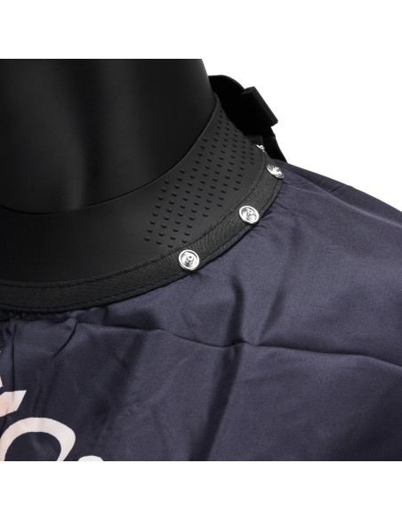 Produktas pagamintas iš juodos, vandeniui atsparios medžiagos , kurią lengva valyti ir kuri yra tinkamai apsaugota nuo visų tipų vandens purslų. Dėl universalaus dydžio ir reguliuojamų spaudžių kaklo srityje jis tinka kiekvienam klientui, nepriklausomai nuo jo ūgio, užtikrinant komfortą procedūros metu.