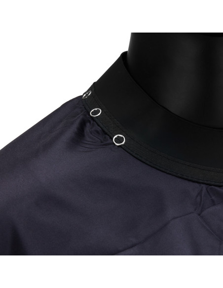 Produktas pagamintas iš juodos, vandeniui atsparios medžiagos , kurią lengva valyti ir kuri yra tinkamai apsaugota nuo visų tipų vandens purslų. Dėl universalaus dydžio ir reguliuojamų spaudžių kaklo srityje jis tinka kiekvienam klientui, nepriklausomai nuo jo ūgio, užtikrinant komfortą procedūros metu.