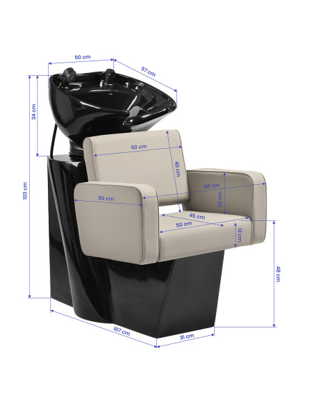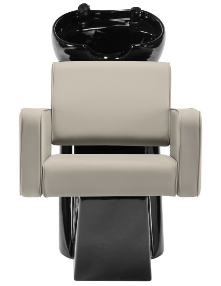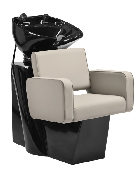 Moderni galvos plautuvė kirpyklai sujungia funkcionalumą, komfortą ir subtilią eleganciją, puikiai dera prie šiuolaikinių salonų dekoro. Jam būdinga paprasta forma su švelniai suapvalintomis linijomis – kvadratinė sėdynė ir porankiai su minkštais kraštais suteikia baldams minimalistinį, tačiau draugišką išvaizdą. Integruota konstrukcija užtikrina stabilumą, o ergonomiška kėdės forma – kliento komfortą ir kirpėjos darbo komfortą. Modernus plovyklos dizainas pabrėžia profesionalų erdvės pobūdį, sukuria nuoseklią ir stilingą visumą.