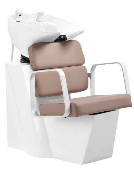 Reikšmingas šio modelio privalumas – tarp atlošo ir sėdynės palikta skylė, kuri palengvina salono švarą, nes leidžia lengvai nušluoti nešvarumus iš kiekvieno fotelio kampelio. Kirpyklos plovykla sukurta taip, kad būtų užtikrintas komfortas įvairių procedūrų metu, užtikrinant tinkamą nugaros atramą. Funkcionalumo ir patogumų derinys daro darbą kirpykloje dar patogesnį. Fotelis užtikrina tinkamą juosmens atramą ir dėl to didelį naudojimo komfortą. Geometrinės formos pilkos spalvos metaliniai porankiai leidžia teisingai išdėstyti kliento pečius.