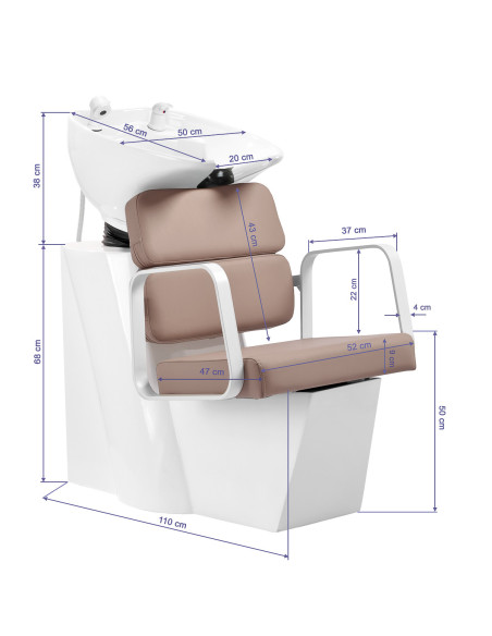 Stilinga galvaplovė patogiam naudojimui. Tinkamas balto keraminio praustuvo dubens gylis apsaugo nuo per didelio vandens ar procedūrų metu naudojamų produktų purslų. Tai leidžia patogiai ir efektyviai atlikti platų paslaugų spektrą. Praustuvo dubens kampą galima reguliuoti, todėl lengva pritaikyti pagal individualius poreikius. Dėl aukštos kokybės medžiagų praustuvas yra patvarus, atsparus spalvos pakitimui ir įbrėžimams, be to, jį labai lengva valyti. Tinkamai profiliuota apykaklė ir pasvirusi atlošas suteikia atramą ir komfortą plaunant plaukus, o dėl patogaus paminkštinimo klientas nepajus šalto keraminio paviršiaus nemalonumų.