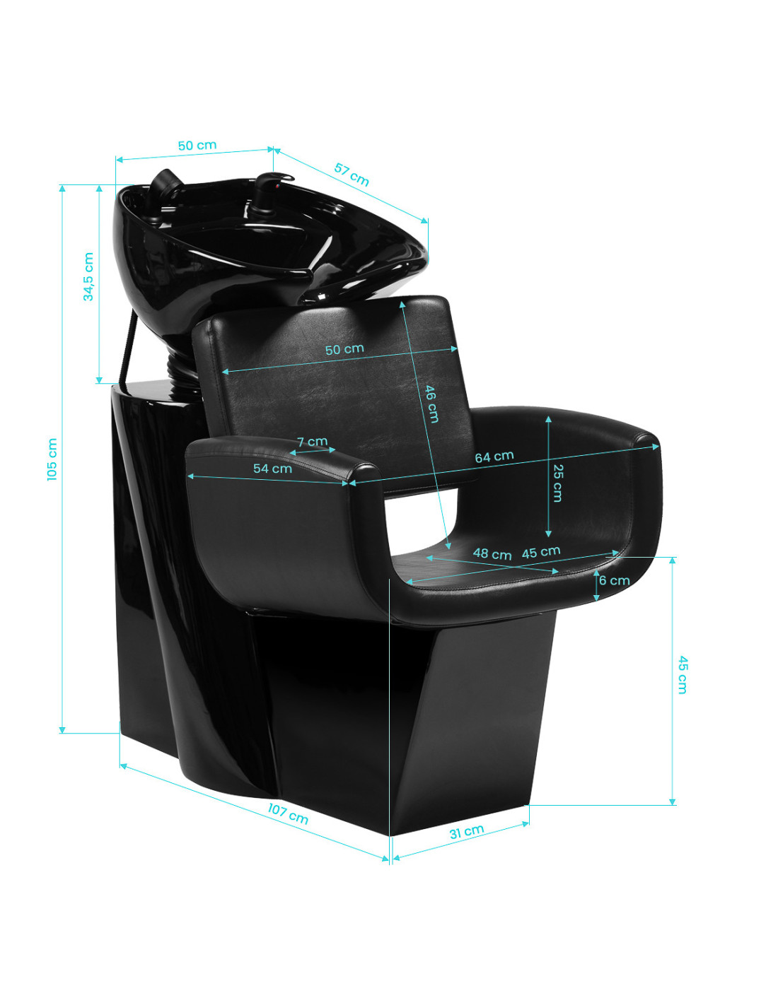 Elegantiška kirpyklos plovykla sujungia funkcionalumą, komfortą ir modernų dizainą. Paprastas minimalistinis dizainas su įdomiai užapvalinta sėdyne leidžia patogiai prižiūrėti ir plauti plaukus. Integruota sėdynės konstrukcija ir ergonomiška forma užtikrina klientų komfortą ir tuo pačiu palaiko kirpėjos darbo komfortą. Stilinga baldų forma pabrėžia interjero charakterį, suteikia jam profesionalumo, šiuolaikiškumo.