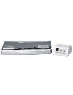 Infraraudonųjų spindulių šildymo aparatas su paklode kūno procedūroms atlikti, 3 paklodės sekcijos: viršutinė, vidurinė, apatinė. temperatūra kiekvienoje sekcijoje reguliuojama atskirai. Kiekvienos sekcijos temperatūra pasikeisdama rodoma ekrane reguliuojama temperatūra: 20 - 50 °C, mygtukinis valdymas laiko nustatymas: 1-60 min. Automatiškai nustatytas 30 min. laikas. Laikas rodomas ekrane, Start / Pause mygtukas. Patogu, kai reikia stabdyti procedūrą atlikimo metu paklodės paviršius PVC. 5 lipdės kūno sričiai, 2 pečiams, 1 kojoms. paklodės plotis: 210 cm, ilgis: 200 cm, galingumas: 580W.